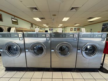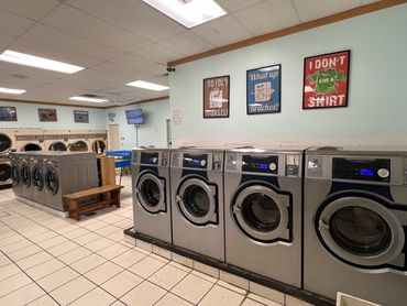 Our laundromat has a variety of sized machines ranging from small to large enough to fit fluffy comforters or about 50 lbs of clothing! No amount of laundry is too big or too small.