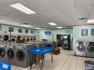 From beginning to end, we have what you need to have a comfortable experience while washing and drying your items. With over 50 machines to choose from, you can swiftly complete the process if you want to. Our folding tables are at a comfortable hight, we have a variety of detergent, softeners, and different additives, we have TV’s, snacks, drinks, an atm machine, comfortable seating, games, and a kids area!!